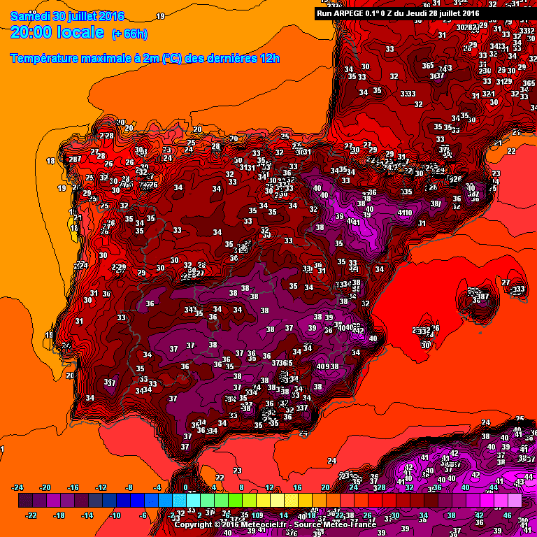 Valle: Mínimas:18-20ºC y Máximas entre 36-38ºC.