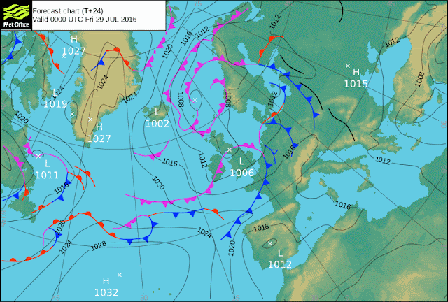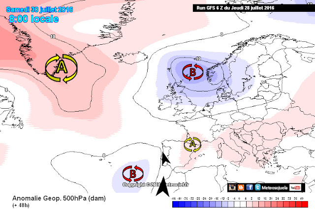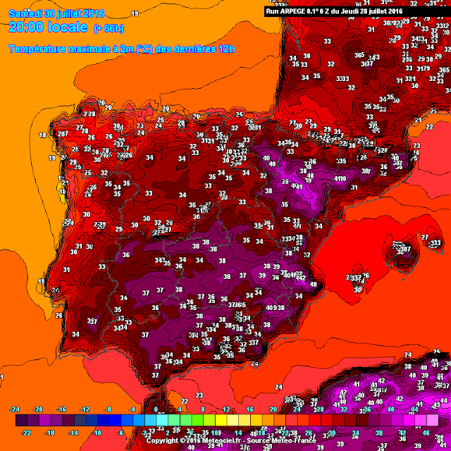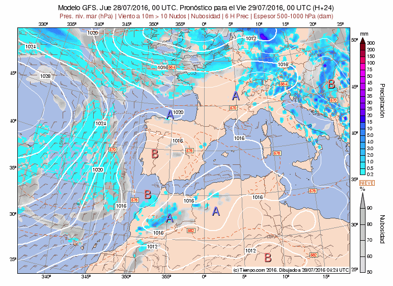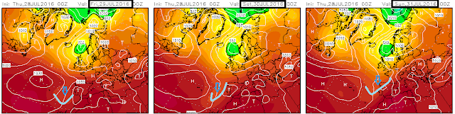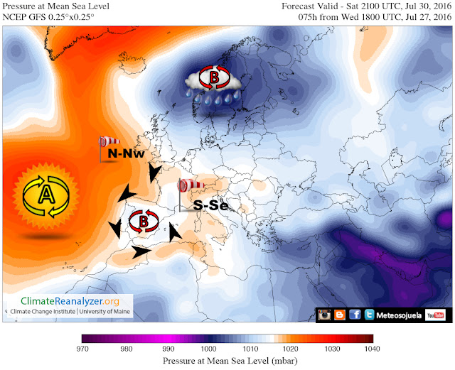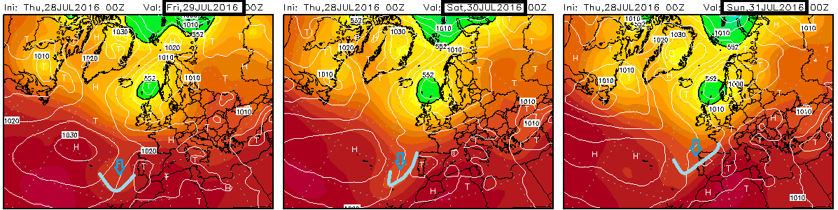 Cambia poco la configuración. Altas presiones y baja relativa fruto del calor acumulado