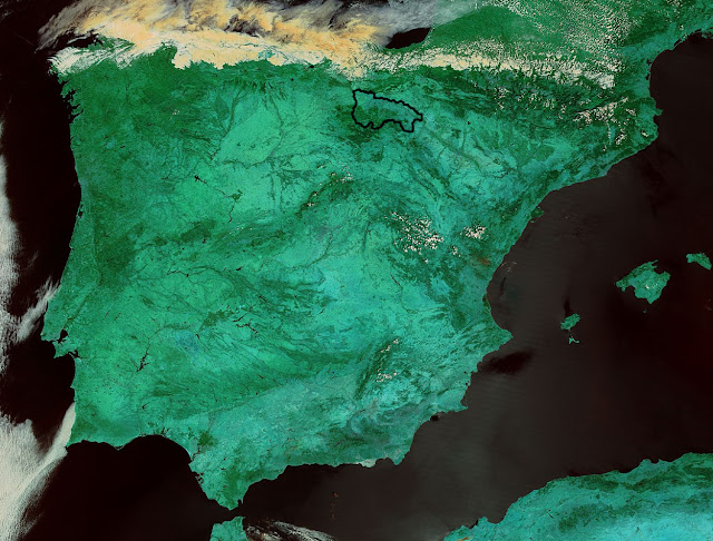 Fijaos en esta imágen del satélite Aqua la nubosidad que se acumula en el norte….