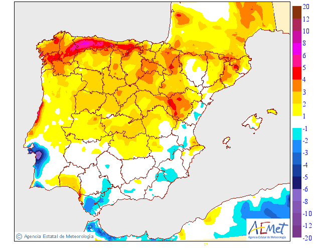 Variación de máximas según AEMET.