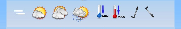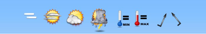 Centros de alta presión retirados con bajas presiones relativas poco definidas y con vientos que irán rolando de dirección. Predominarán del S-Se al principio para ir rolando al W-Sw yal W-Nw al final. (Altas presiones: Anaranjado / Bajas presiones:Azul/ Intensidad de color = +o- profundidad)