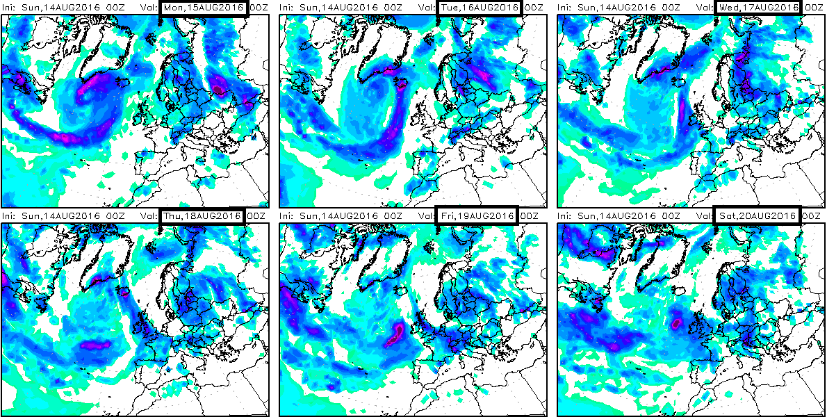 En cuanto a precipitación, podemos observar en los modelos de precipitación global como prácticamente cualquier día de la semana puede llover algo. No parece que vaya a ser gran cosa y seguramente este asociado a la formación de chubascos tormentosos de tarde, los primeros días y a la llegada de un frente debilitado los últimos