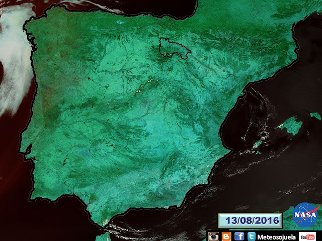 …a la vez que hemos disfrutado de cielos poco nubosos no solamente en nuestra región sino prácticamente en toda la península como bien se puede observar en las imágenes del satelite AQUA de la NASA…