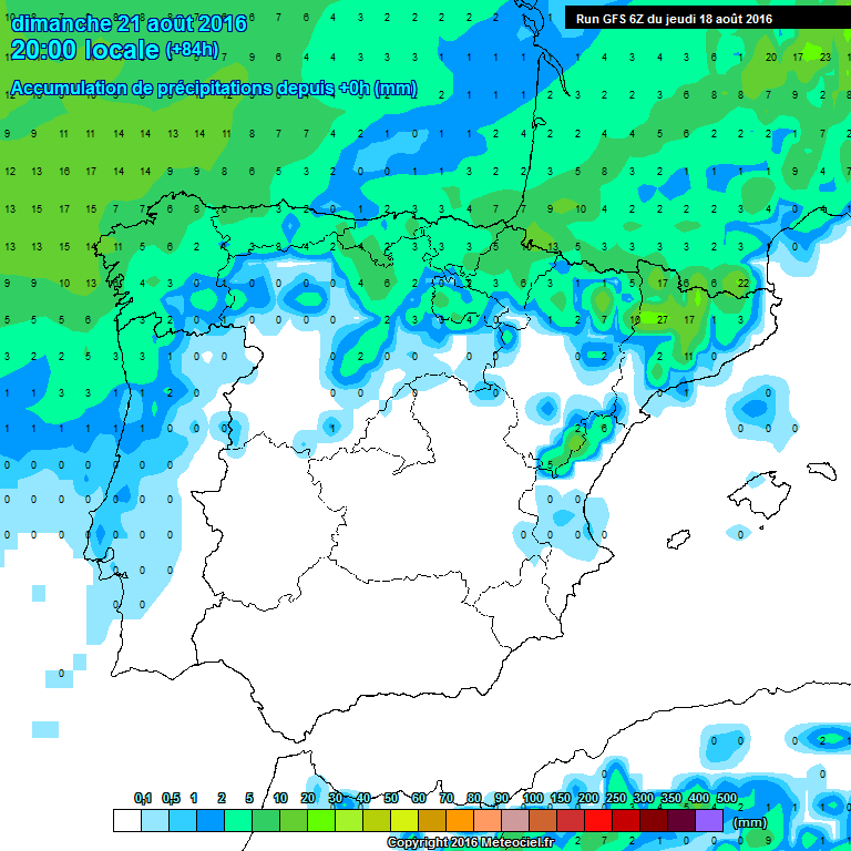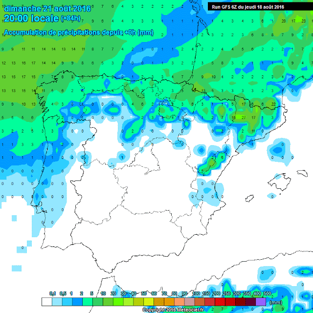 Se esperan precipitaciones, asociadas a la llegada del frente. Como suele ser habitual, más probables en áreas de montaña. No parecen abundantes