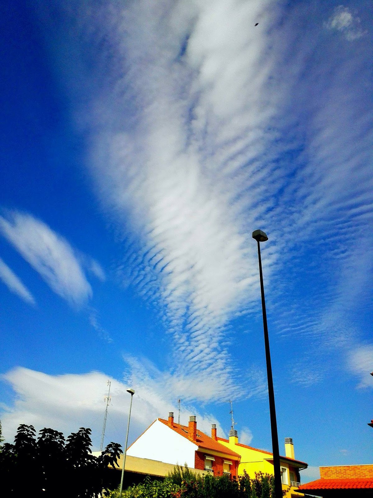 Muy típicos también son los Altocúmulos flocus…”Cielo empedrado…..” y nos envían…
