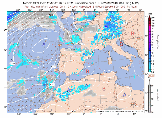 Os dejo aquí una animación con mapas diarios de Meteored. Secuencia cada 6 horas donde se observa, nubosidad, vientos, precipitación..etc