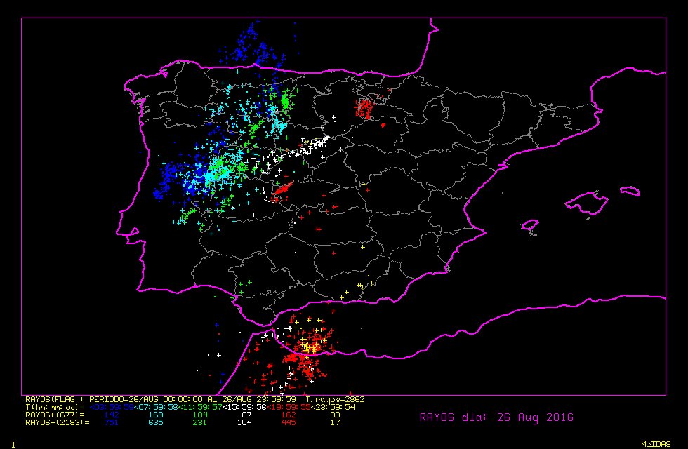 Estas tormentas vinieron acompañadas de aparato eléctrico como podemos ver en el mapa de descargas, siendo el oeste de la región el más afectado.