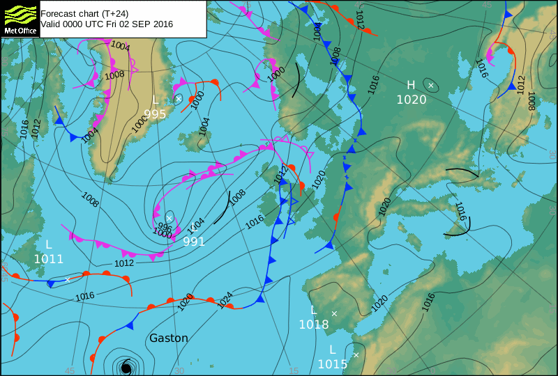 A principios de semana comentabamos que parecía que el fin de semana el tiempo iba a empeorar por la llegada, ya en forma de borrasca extratropical, de los restos del huracán Gastón, sin embargo, se ha establecido un cinturón de altas presiones que los desvía hacia latitudes más altas, dejando en la península un tiempo tranquilo y veraniego, solo alterado mínimamente por un embolsamiento de aire frío en altura sobre la península que esta favoreciendo la formación de algunas tormentas en la Ibérica, pero con tendencia  a ir desgastándose.