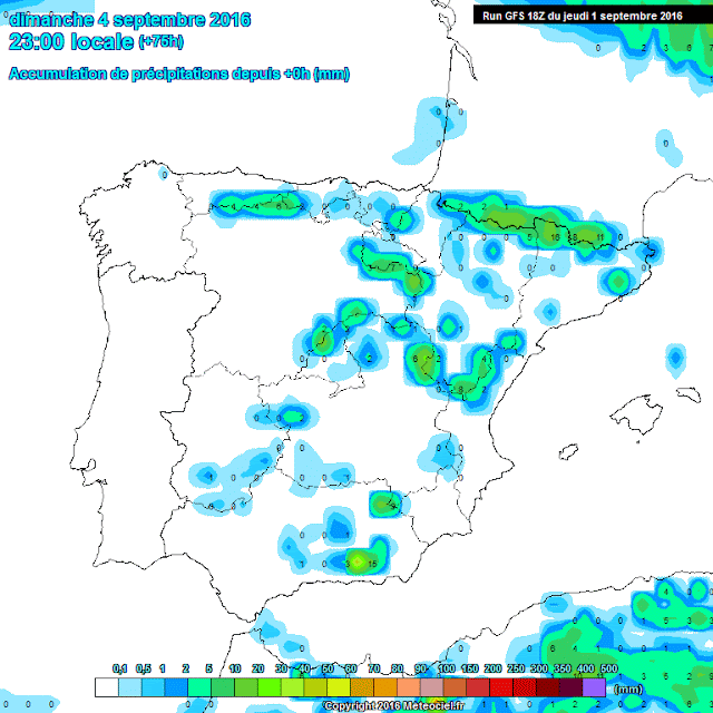 Se puede producir alguna precipitación débil , más probable en zonas de montaña, asociadas a la formación de tormentas de tarde