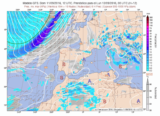 Os dejo aquí una animación con mapas diarios de Meteored. Secuencia cada 6 horas donde se observa, nubosidad, vientos, precipitación..etc