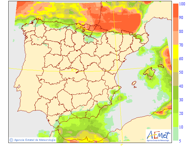 Probabilida de Precipitación de >0,5mm según AEMET.