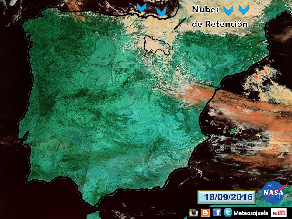 Hemos “disfrutado” de abundante nubosidad y de algunas precipitaciones….así se veían las nubes retenidas en las costas del Cantábrico, valle del Ebro y Pirineos desde el satélite AQUA de la NASA…