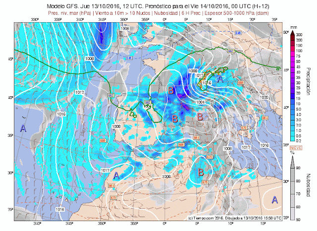 Os dejo aquí una animación con mapas diarios de Meteored. Secuencia cada 6 horas donde se observa, nubosidad, vientos, precipitación..etc