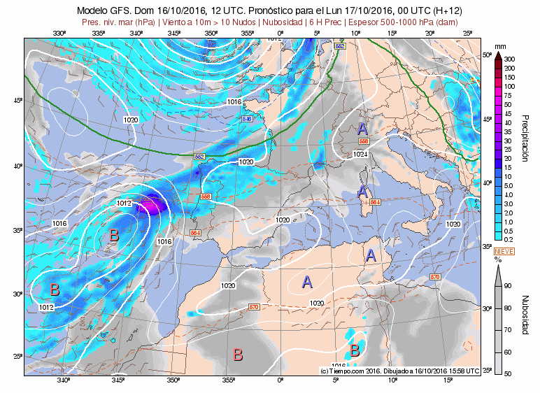 Os dejo aquí una animación con mapas diarios de Meteored. Secuencia cada 6 horas donde se observa, nubosidad, vientos, precipitación..etc