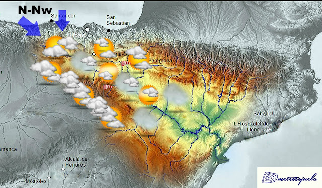 Así que ya véis, esta semana comenzará y terminará algo revuelta pero en general será estable, fresca, con poca nubosidad y vientos predominantes del N-Nw, sin olvidar la posibilidad de nieblas matinales.