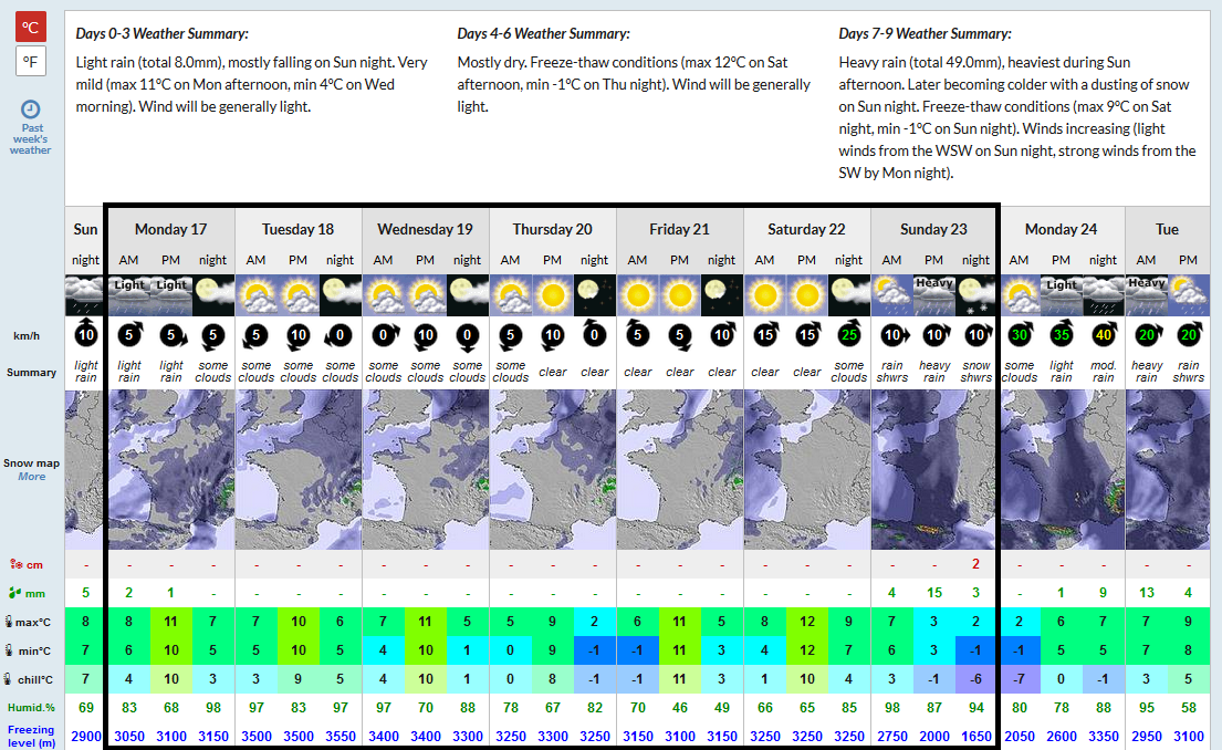 Aquí tenéis las previsiones en montaña teniendo como base la estación de Valdezcaray a 1500m. Esta semana como os decía será de comienzo y final revuelto, pero en general estable y con poca nubosidad.