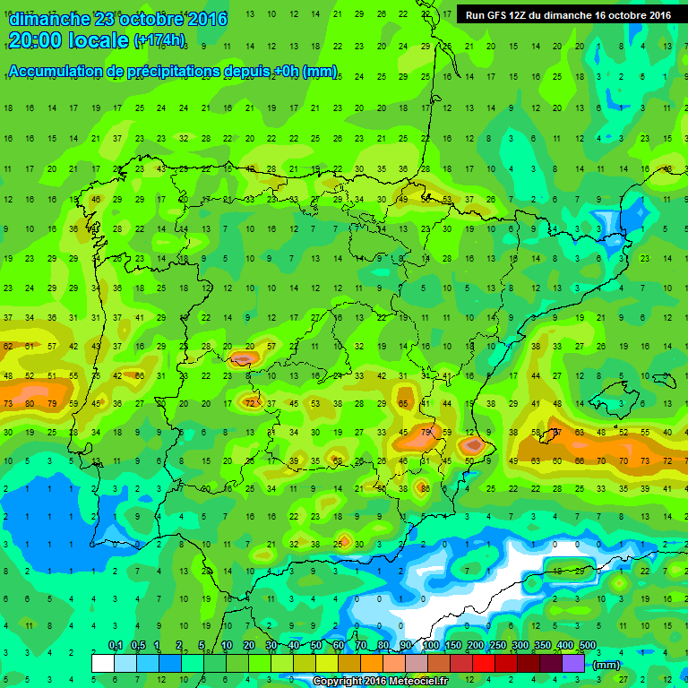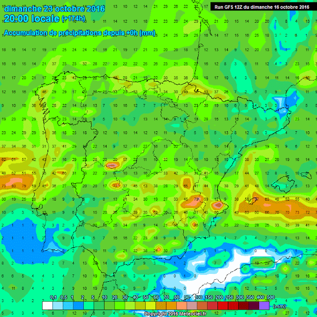 Hay que tener en cuenta que este mapa hace referencia a la totailidad de la semana y probablemente las precipitaciones más intensas se den el domingo, por lo que aunque veáis bastante acumulación la semana, hasta el domingo, va a ser tranquila
