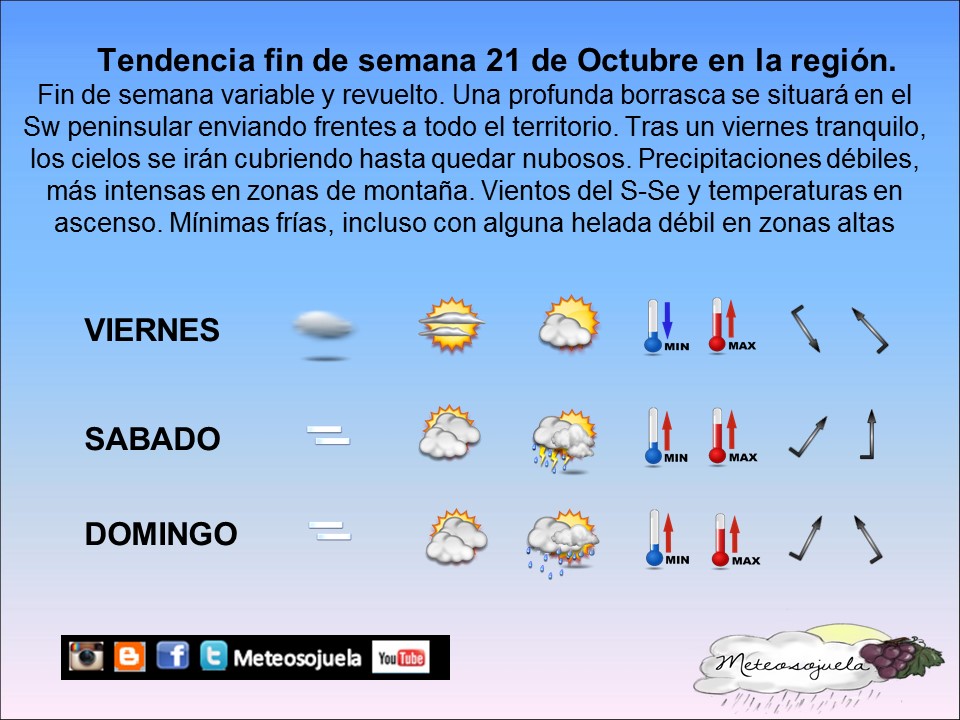 TENDENCIA FIN DE SEMANA ¿COMO HA SIDO EL TIEMPO……QUE NOS ESPERA…..? Tiempo otoñal en nuestra Comunidad, con nubosidad variable, algunas nieblas matinales y temperaturas que cada día son un poquito más bajas, alcanzado poco a poco valores propios de la época. Y fijaos en esta imágen del satélite Meteosat, como aún habiendo nubosidad en […]