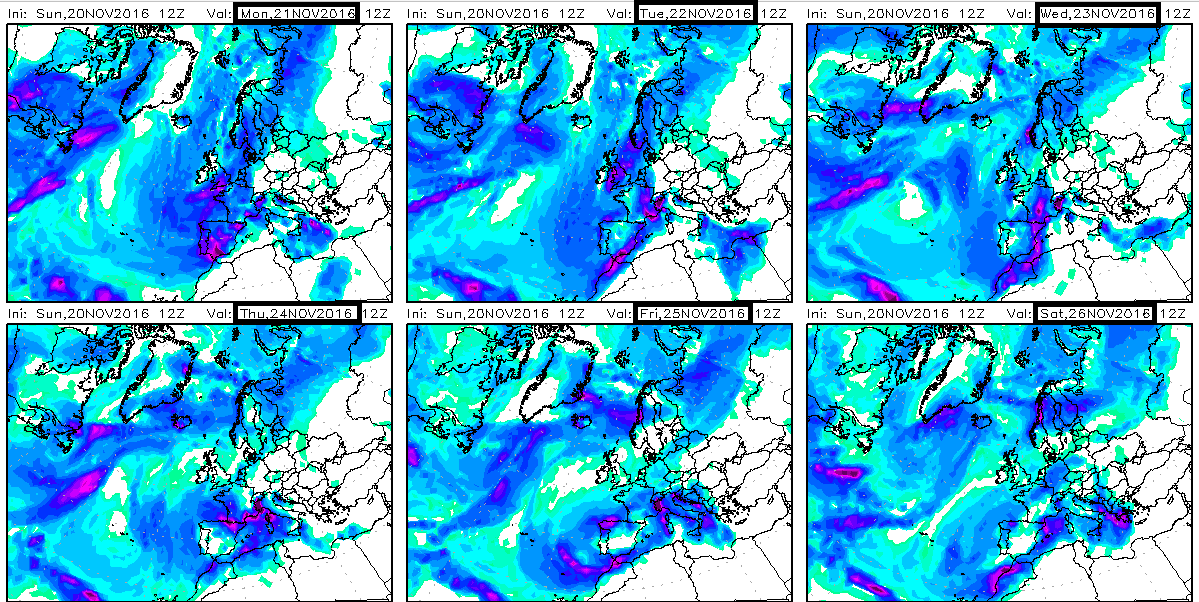 Os dejo aquí una animación con mapas diarios de Meteored. Secuencia cada 6 horas donde se observa, nubosidad, vientos, precipitación..etc