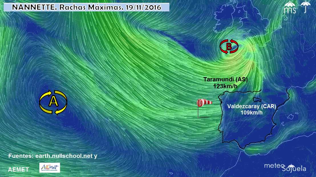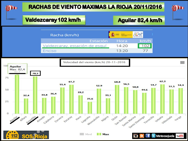 …con rachas de hasta 109 km/h en Valdezacaray el sábado y de 102km/h el domingo, soplando también fuerte en Rioja Baja