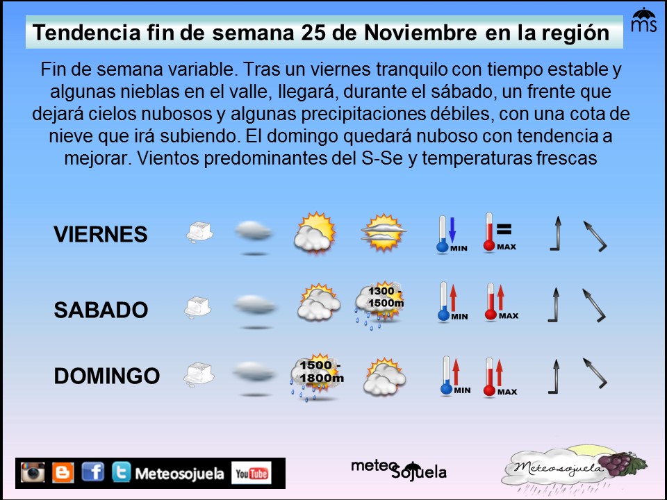 Fin de semana variable con nieblas y alguna precipitación débil.