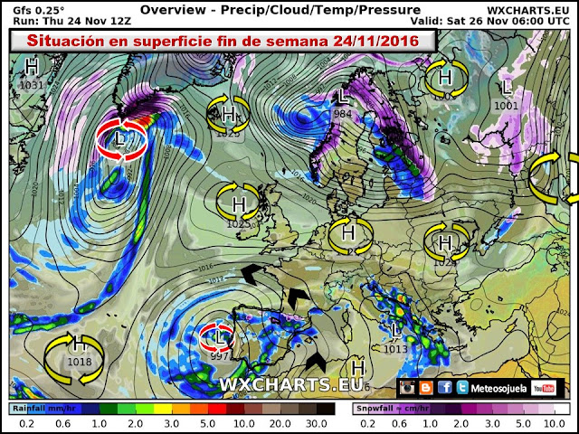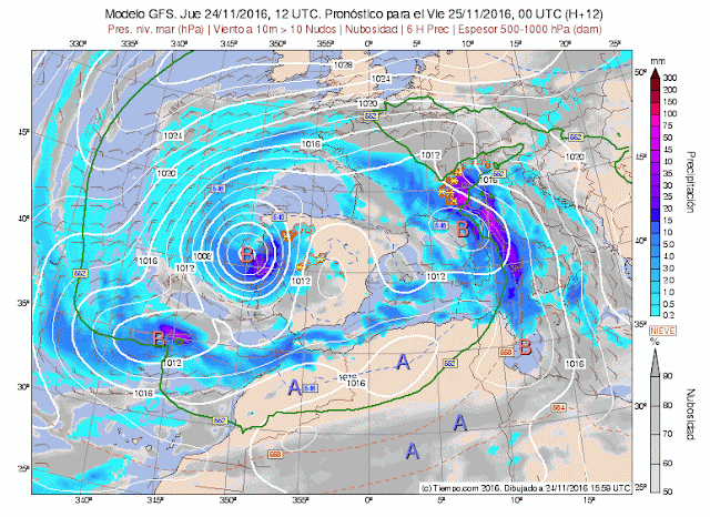 Os dejo aquí una animación con mapas diarios de Meteored. Secuencia cada 6 horas donde se observa, nubosidad, vientos, precipitación..etc