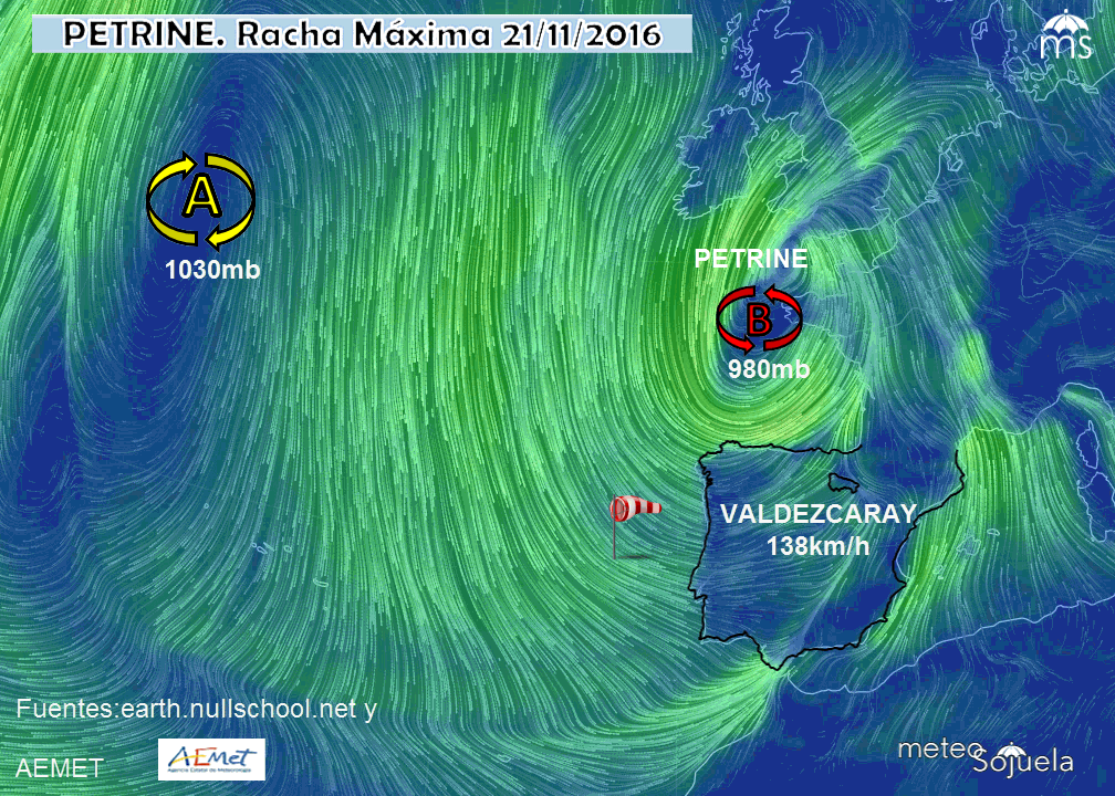 que dejaba vientos cálidos del Sw que alcanzaban los 138km/h en Valdezcaray y rozaba los 100km/h en otros lugares.