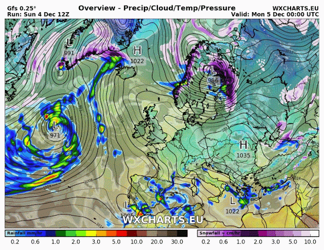 Os dejo aquí una animación con mapas diarios de Meteored. Secuencia cada 6 horas donde se observa, nubosidad, vientos, precipitación..etc