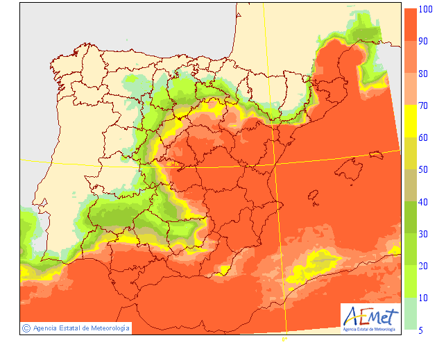 Probabilidad de precipItación de más de 0,5mm según AEMET