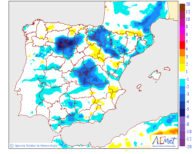 Por lo tanto podemos encuadrar la anomalía dentro de una situación típicamente anticiclónica, aunque las temperaturas en el valle vendrán condicionadas por las nieblas, por lo que tampoco subirían tanto, donde sí serían superiores a lo normal es en áreas de montaña.