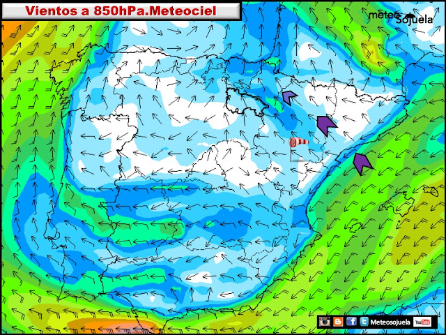 y la otra, y no por ello menos importantes es el componente marítimo de los vientos del Este-Sureste que se canalizan por el valle del Ebro desde el Mediterráneo…