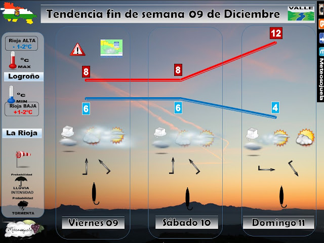Aquí tenéis las previsiones en montaña teniendo como base la estación de Valdezcaray a 1500m. Este finde..algo revuelto, con más lluvia que nieve. :))