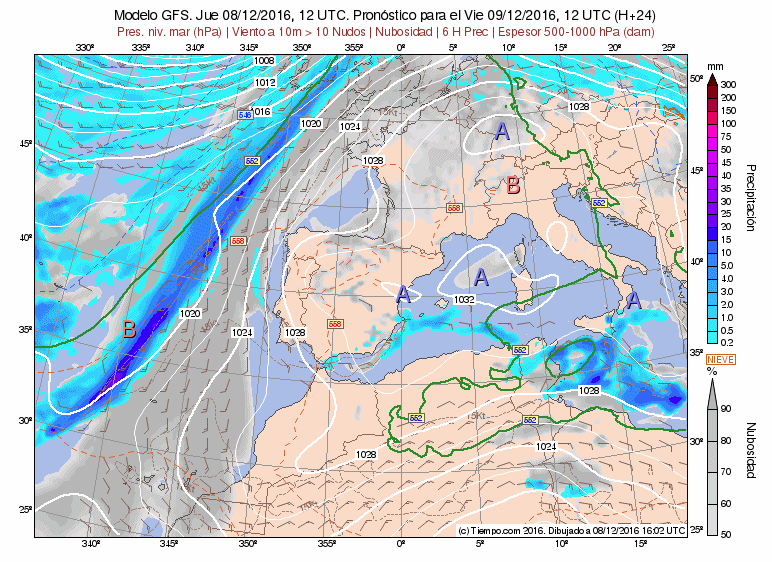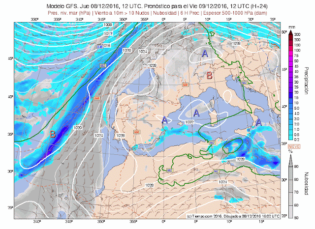 Os dejo aquí una animación con mapas diarios de Meteored. Secuencia cada 6 horas donde se observa, nubosidad, vientos, precipitación..etc