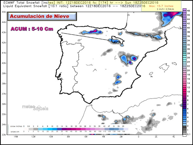 En los modelos globales de precipitación acumulada vemos que se pueden acumular cantidades de entre 5-10 litros tanto en el valle como en la Ibérica, sobre todo en la zona Occidental