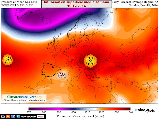 De cara al fin de semana predominarán las altas presiones,con algunos frentes debilitados, pero con vientos algo más cálidos del W.