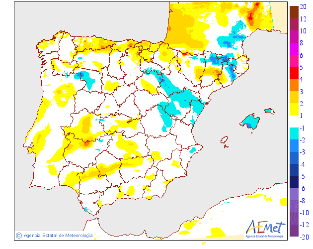 AEMET nos anticipa en sus modelos de Anomalías que esta semana será en nuestra región, normal respecto a la precipitación y normal respecto a las temperaturas.