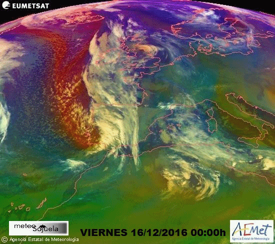 Impresionantes las imágenes del satélite Meteosat, no tanto por lo que a nosotros nos afecta con la llegada de estos frentes, sino por los trenes convectivos que llegan al Levante…y que están dejando precipitaciones superiores a los 200 litros…