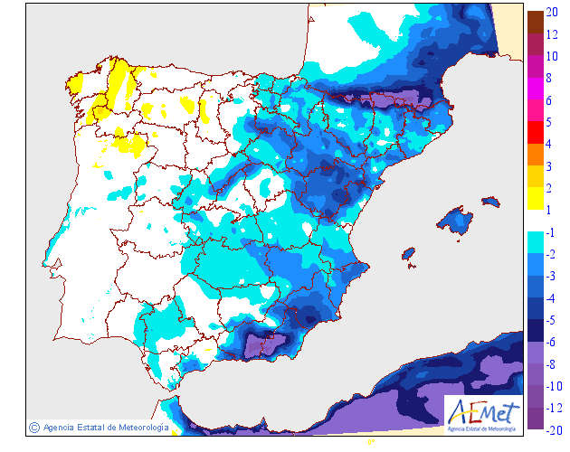 Valle: Mínimas: 0-2ºC y Máximas entre 6-8ºC.