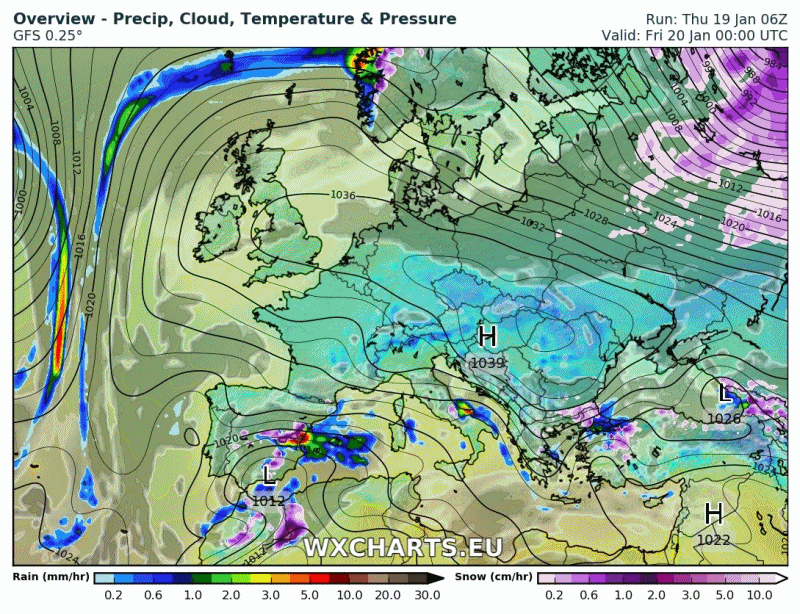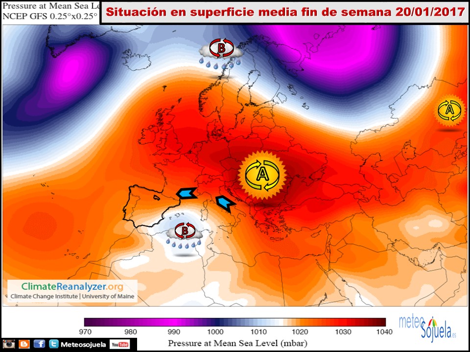 Observamos en altura , una anomalía negativa con ese embolsamiento de aire frío situado en el Mediterráneo donde genera una borrasca en superficie bastante activa. Altas presiones en Europa. Flujo de vientos de Levante que se recurván el domingo y entran al valle del Nw