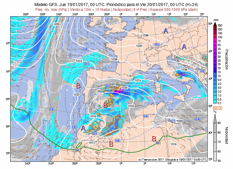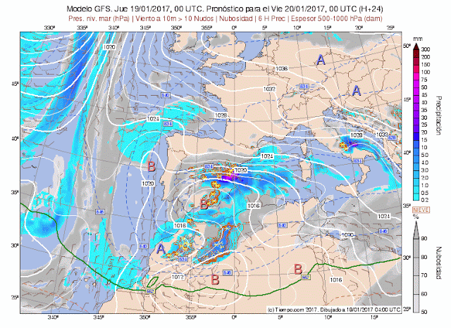 Os dejo aquí una animación con mapas diarios de Meteored. Secuencia cada 6 horas donde se observa, nubosidad, vientos, precipitación..etc