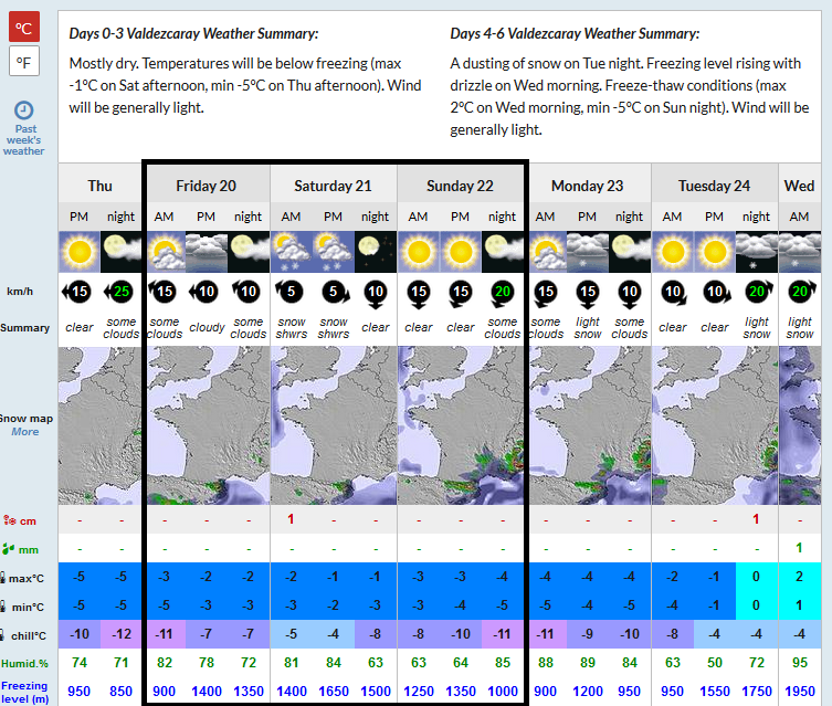 Aquí tenéis las previsiones en montaña teniendo como base la estación de Valdezcaray a 1500m. Vuelve la nieve a Valdezcaray