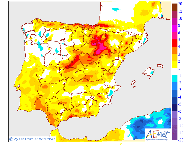 Se puede producir alguna precipitación débil y dispersa en áreas de la Ibérica con una cota de nieve que rondará los 900-1000m. Poca cosa