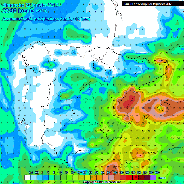 En cuanto a precipitación, podemos observar en los modelos de precipitación global indican que toda la precipitación se queda sobre todo en el arco Mediterráneo. Llegará muy desgastada a nuestra región, siendo débiles sobre tdo en la Ibérica Oriental