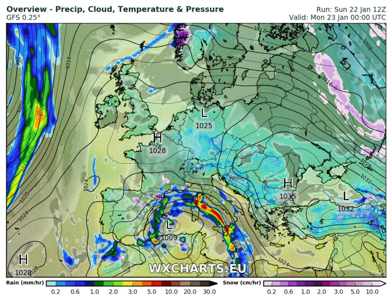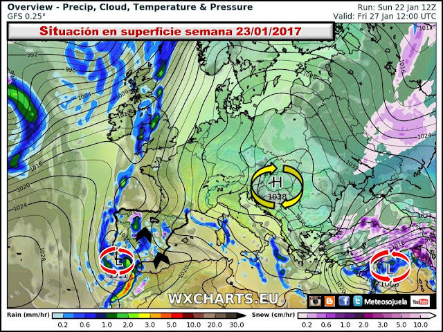 Altas presiones en Centoreuropa lo cual favorece también la llegada de estos vientos del norte