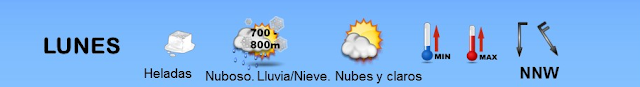 Valle: Mínimas: 0/-2ºC y Máximas entre 6/8ºC.