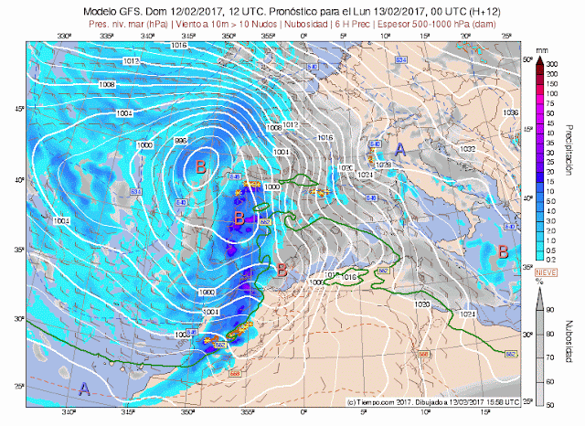 Os dejo aquí una animación con mapas diarios de Meteored. Secuencia cada 6 horas donde se observa, nubosidad, vientos, precipitación..etc