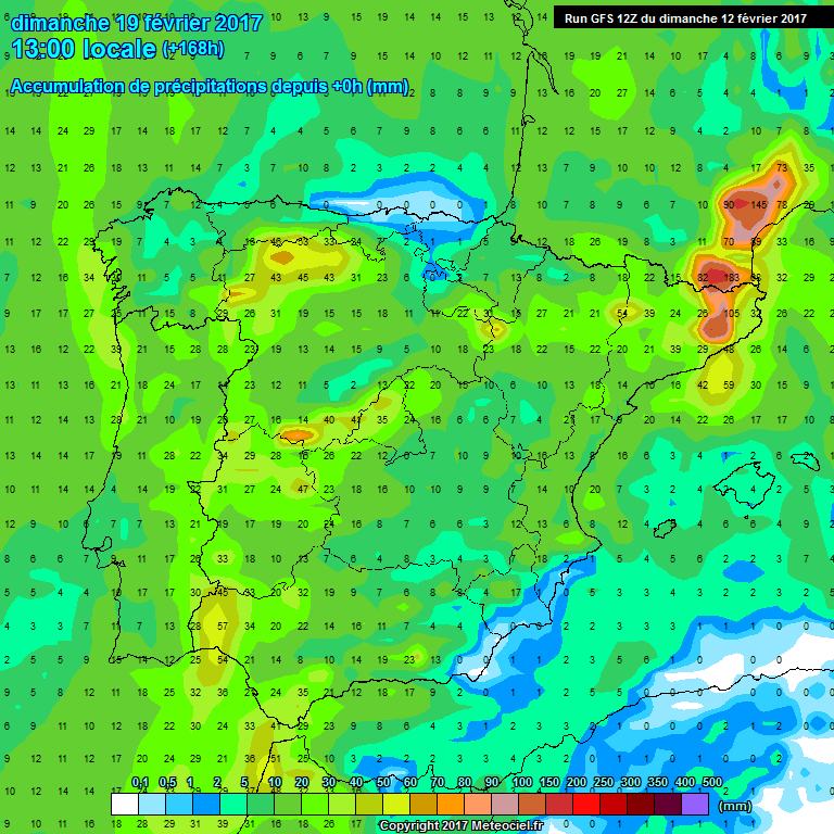 En los modelos globales de precipitación acumulada vemos que se pueden acumular cantidades de entre 5-10 litros en el valle y 25-30litros en la Ibérica. Están asociadas a las precipitaciones producidas por los frentes que nos atravesarán durante el lunes, ya que después remiten. Observar como de nuevo la zona más afectada será la Ibérica Oriental y la Rioja Baja