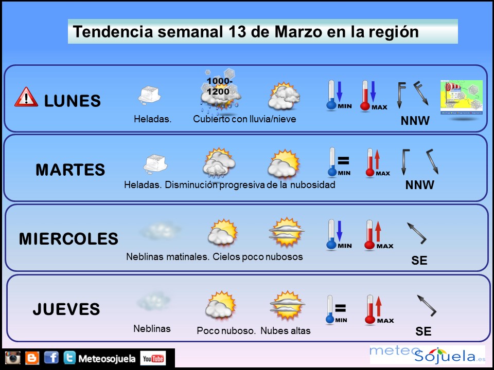 TENDENCIA SEMANAL Tu tiempo en Logroño y La Rioja. Semana que comenzará fría y revuelta por la llegada de frentes con vientos intensos del NNW, que dejarán nubosidad y precipitaciones, pero con tendencia a mejorar quedando cielos menos nubosos y con un ascenso de temperaturas que dejará ambiente más primaveral. ¿ COMOHA SIDO EL […]