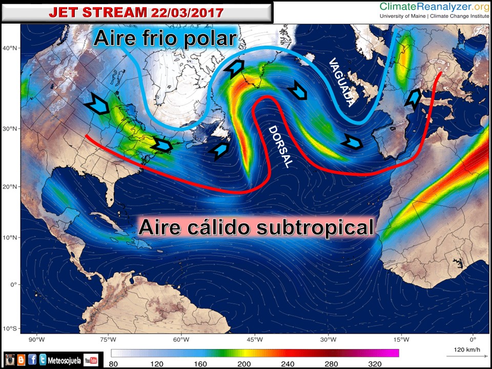 Se localizan cercanos a la Tropopausa y en cada hemisferio hay uno polar y uno subtropical. A nosotros nos interesa el Jet Stream Polar del Hemisferio Norte, que es el que afecta a nuestras latitudes
