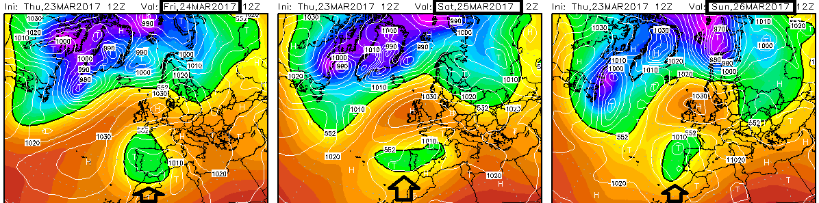 Os dejo aquí una animación con mapas diarios de Meteored. Secuencia cada 6 horas donde se observa, nubosidad, vientos, precipitación..etc